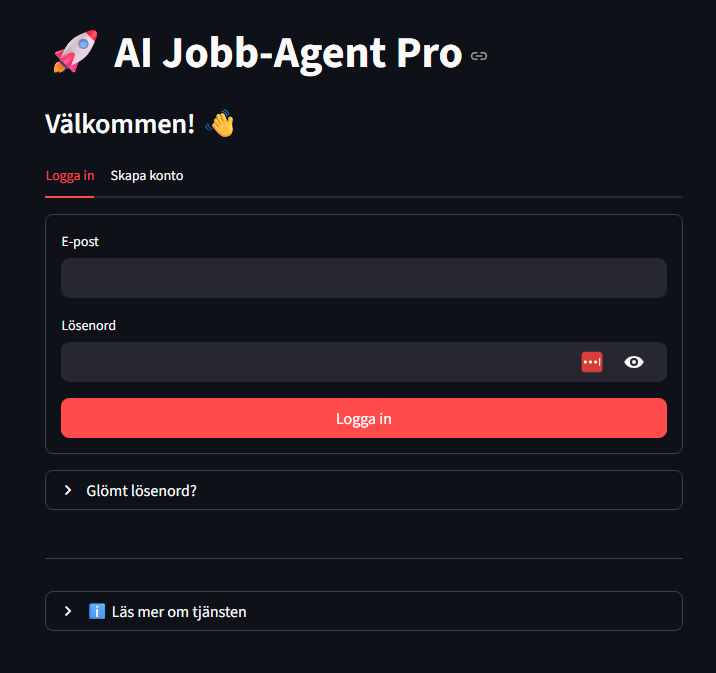 Lås upp 5 krediter i AI Jobb-Agent Pro. Varje kredit ger dig en djupgående matchningsanalys av ditt CV mot en jobbannons, samt ett skräddarsytt, professionellt personligt brev redo att skickas
